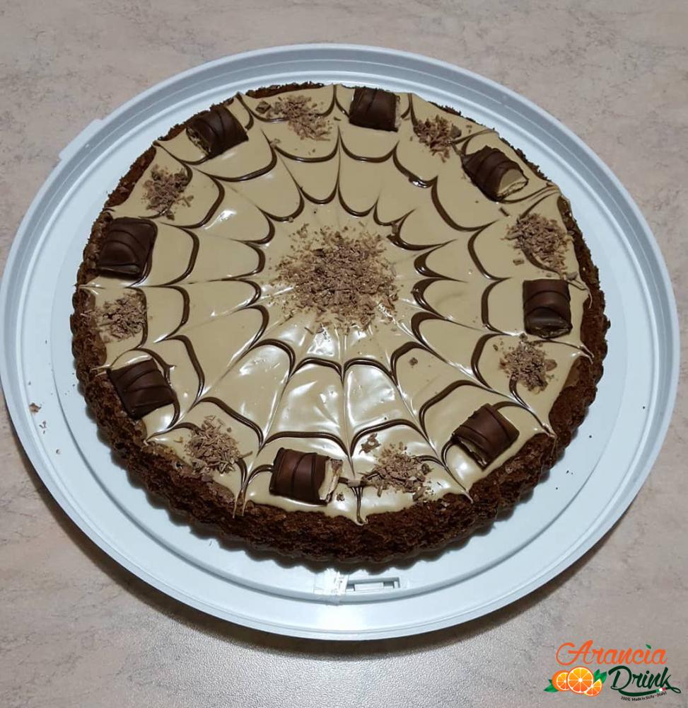 Per la decorazione mettere la crema di novviole, anch'essa sciolta in una siringa per dolci e fare una pallina al centro della crostata, poi fare 2 cerchi dall'interno all'esterno (quindi piccolo, medio e grande) e con lo stecchino fare una linea orizzontale e una verticale (praticamente una croce) e poi fare delle linee oblique in modo da formare le 16 fette.